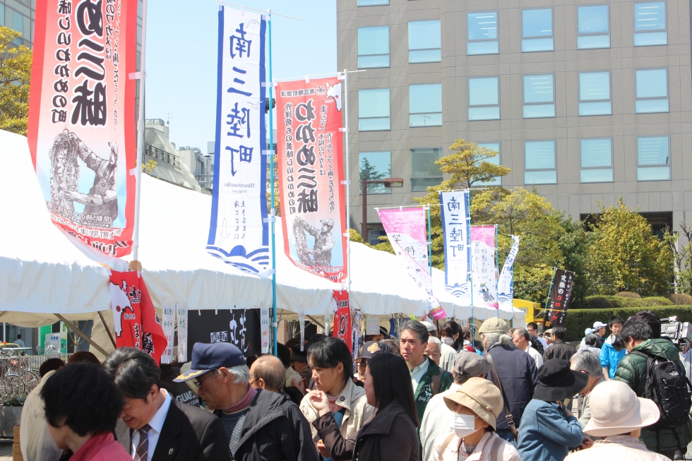 当日は大人気のわかめの詰め放題、大好評のもちまきを始め、南三陸の美味いものや特産品を販売するブースが立ち並びます。