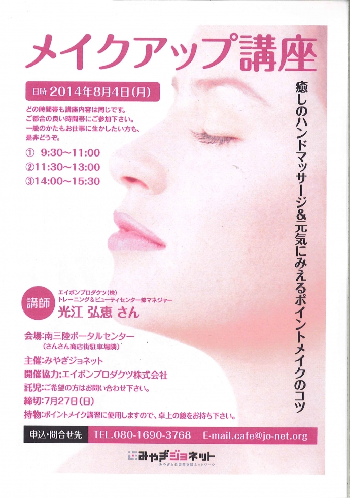 持ち物:ポイントメイク講習に使用しますので、卓上の鏡をお持ちください。