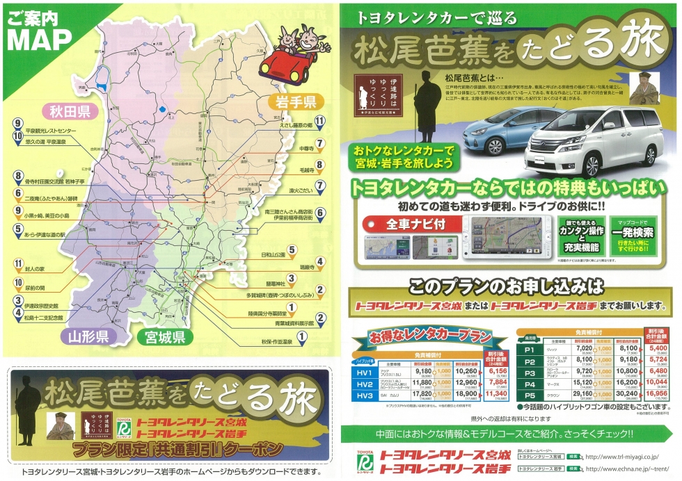 車を借りる際に指定の「共通割引クーポン(チラシ内MAP面の下部)」を提示することで、各車種が大幅値下げ!!