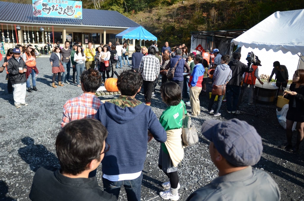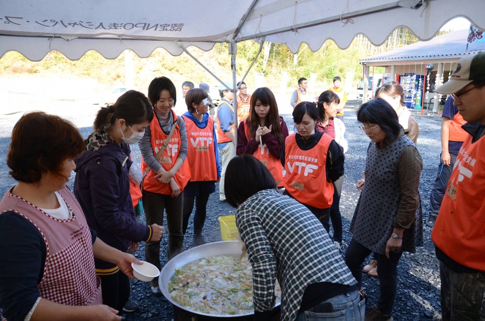 南三陸町の食材で作った芋煮や旬の食材たちを生産者の皆さんと一緒に