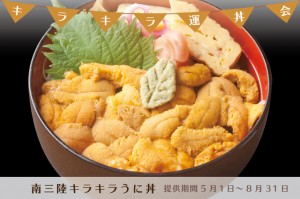 キラキラうに丼は、明日5月1日~8月31日まで下記店舗にて提供しています。