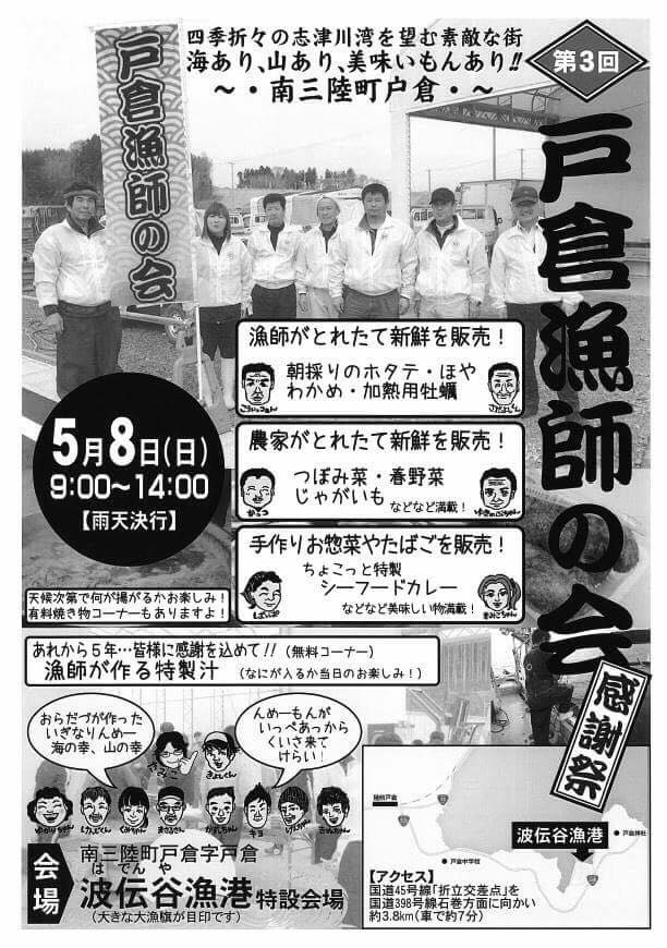 と言うわけで、5/8(日)「第3回 戸倉漁師の会 感謝祭」