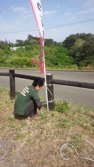 本日、5月8日に伊里前商店街から田束山までの道路に、ノボリを設置しました!