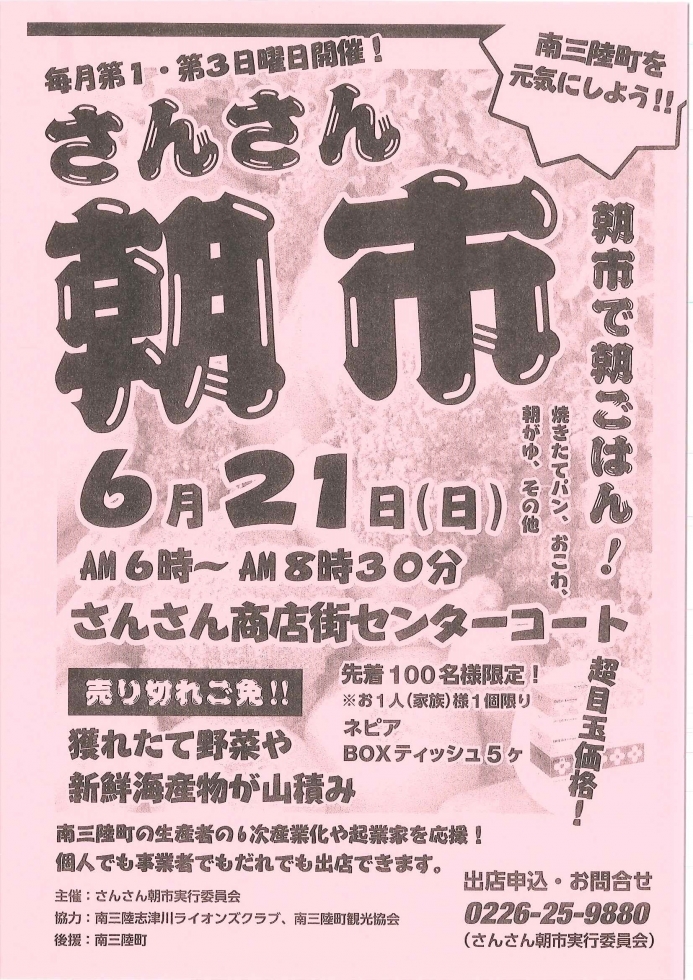 (さんさん朝市実行委員会 平日10:00-17:00)