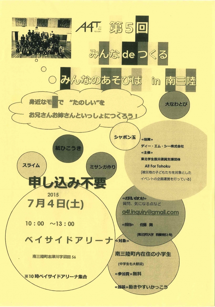 *対象 南三陸町内在住の小学生(中学生も大歓迎!)