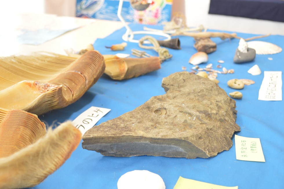 - 町内で見られる化石や貝の展示
