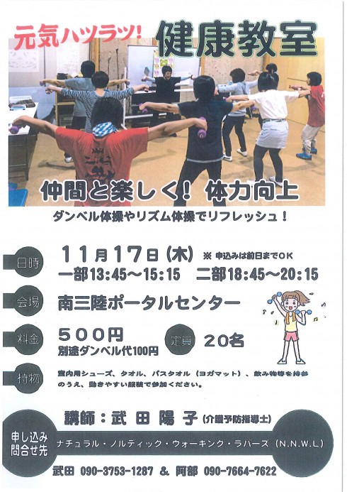 飲み物等を持参のうえ、動きやすい服装で参加ください。