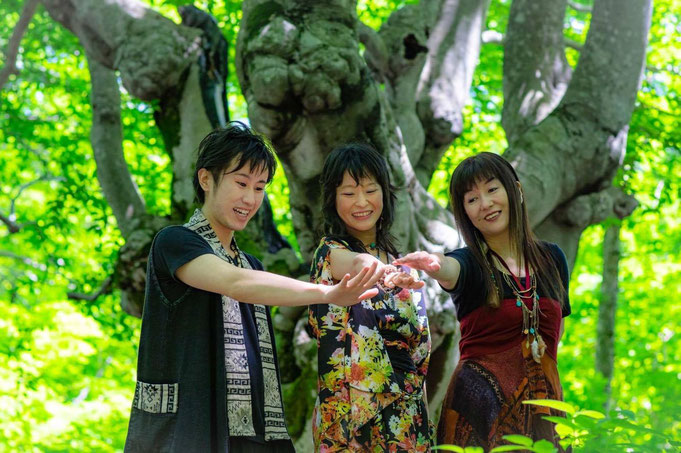 南米の笛ケーナを始め各国の笛を操るmarinと キーボード兼作曲担当の山本さとみ、