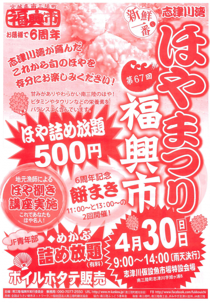4月30日の福興市は、これまで、そしてこれからも南三陸町を支えて下さる皆様へ、より一層の感謝を込めて開催致します。