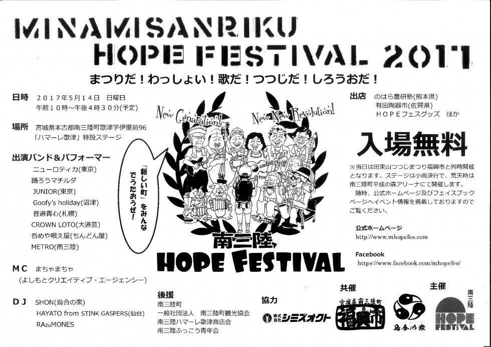 さらに当日は、音楽イベント「南三陸 HOPE FESTIVAL 2017」も同時開催!