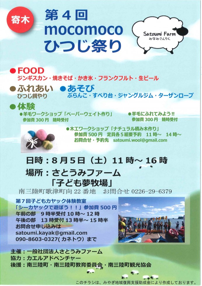 第4回 mocomoco ひつじ祭りが開催されます〜!