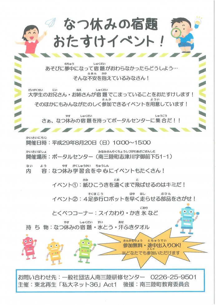 さぁ、なつ休みの宿題を持ってポータルセンターに集合だ!!