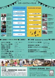 タイムテーブル、出店店舗はこちらのチラシをご参照ください。