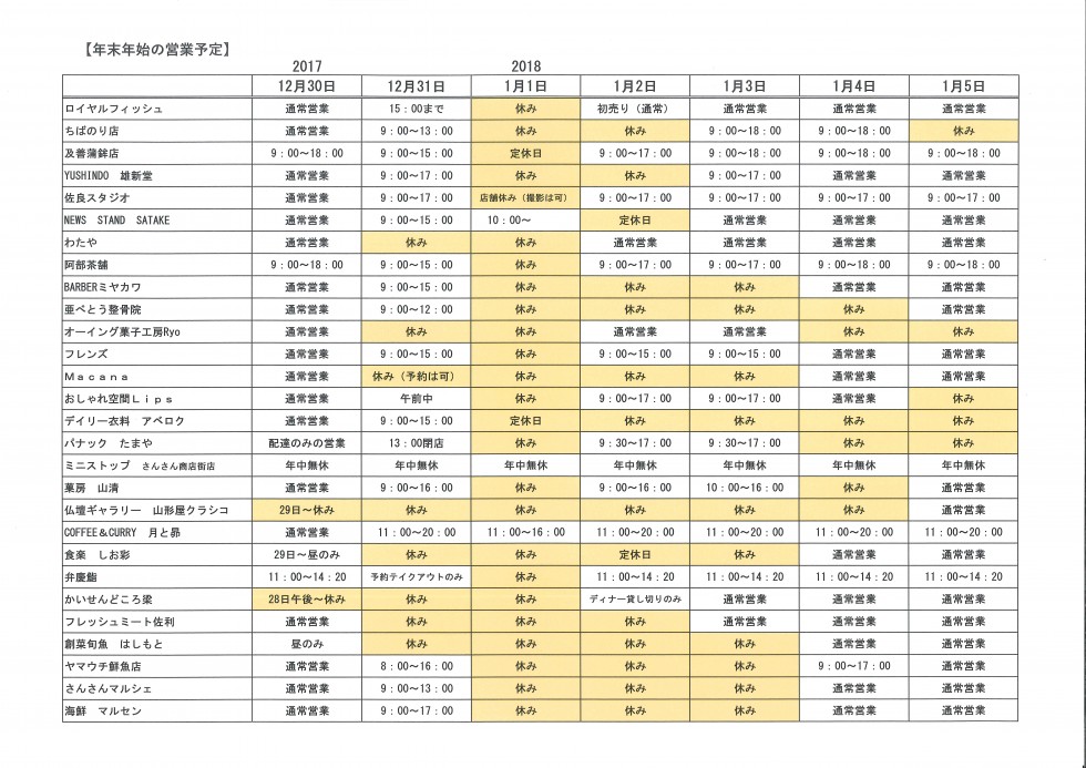 ※店舗により営業終了・開始日が異なりますので、ご注意ください。