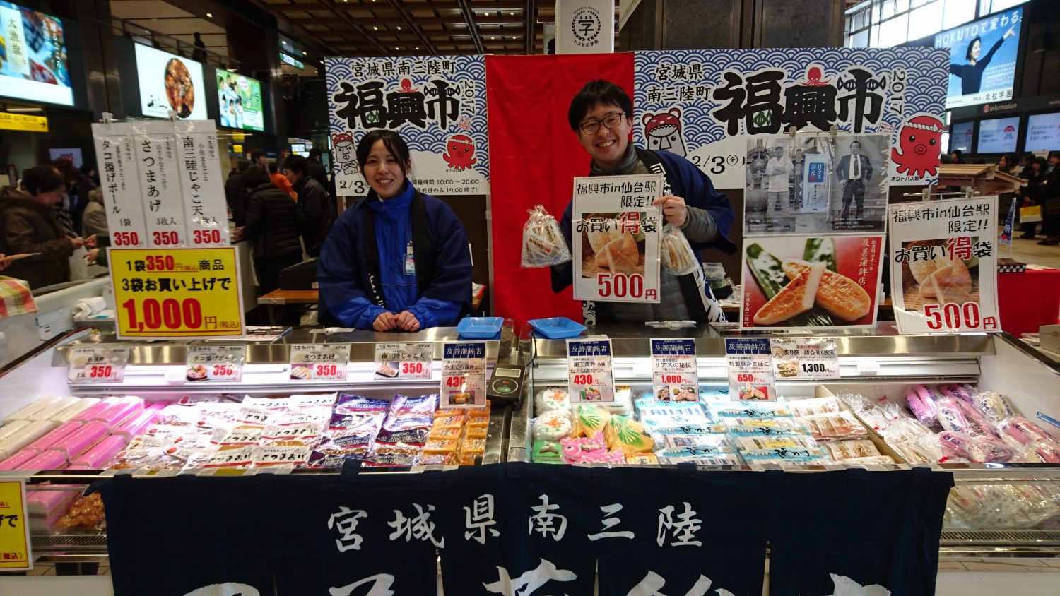 南三陸町福興市ブースにてお買上500円毎に1枚の抽選券をお渡し致します。