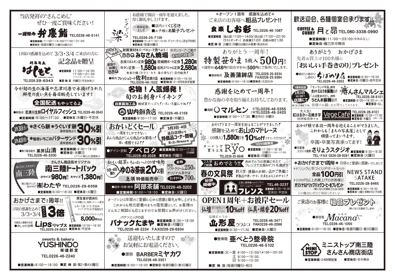 これを記念し、商店街では3月3日、4日に大感謝祭セールを開催いたします!!