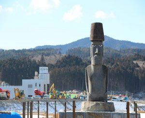 モアイ像が2月中旬にさんさん商店街へ移設されたのを記念して