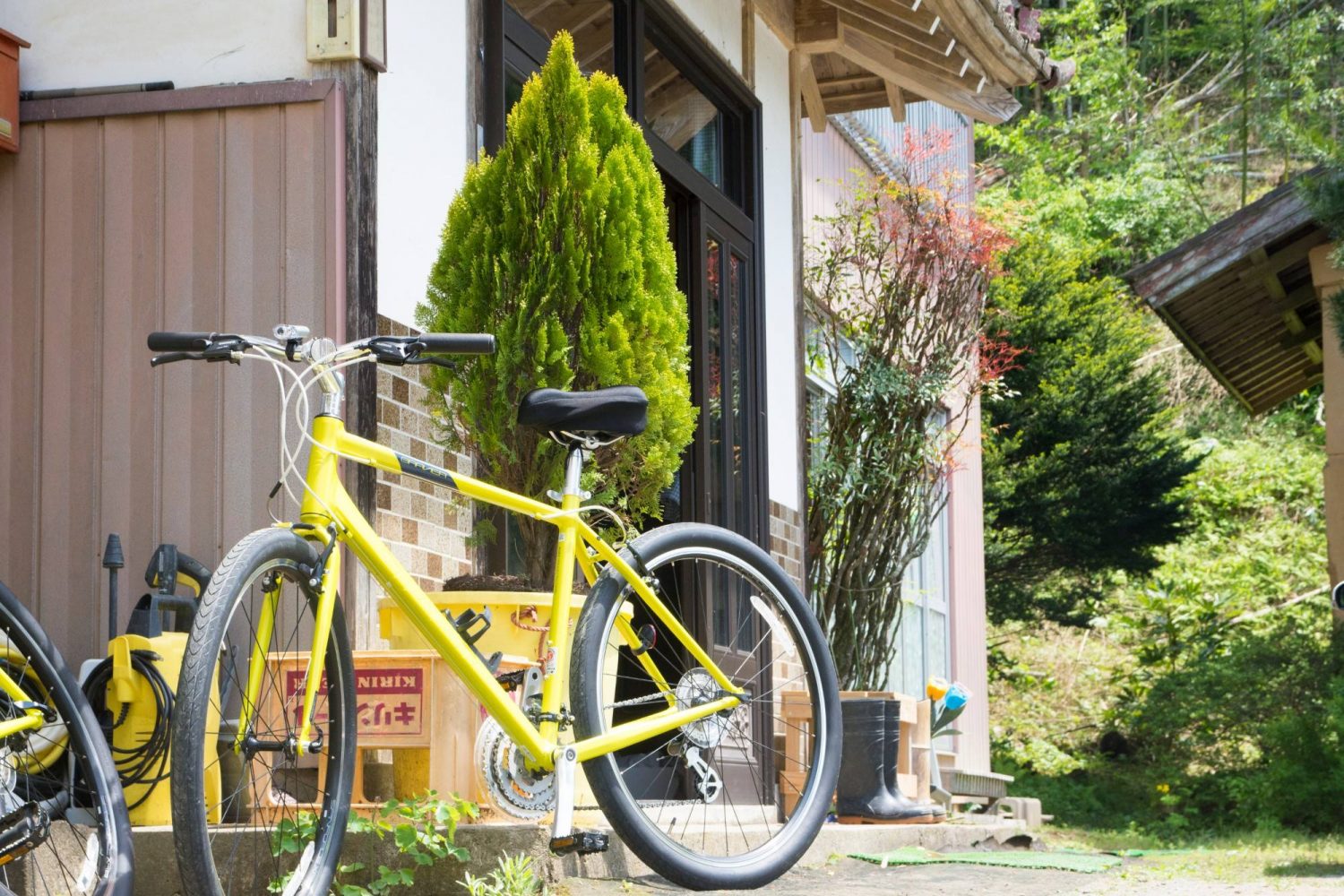 - 玄関に自転車を停めて休憩します