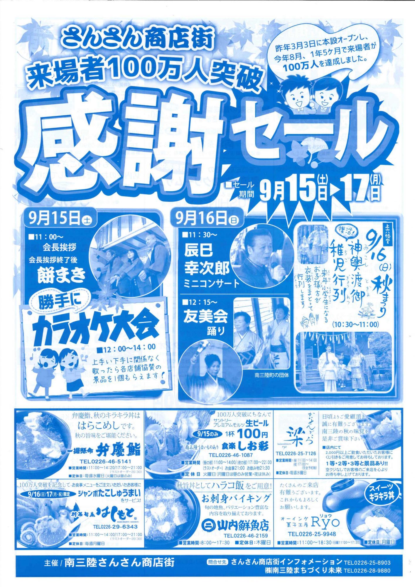 その他さんさん商店街にある各店舗で感謝セールを行います。