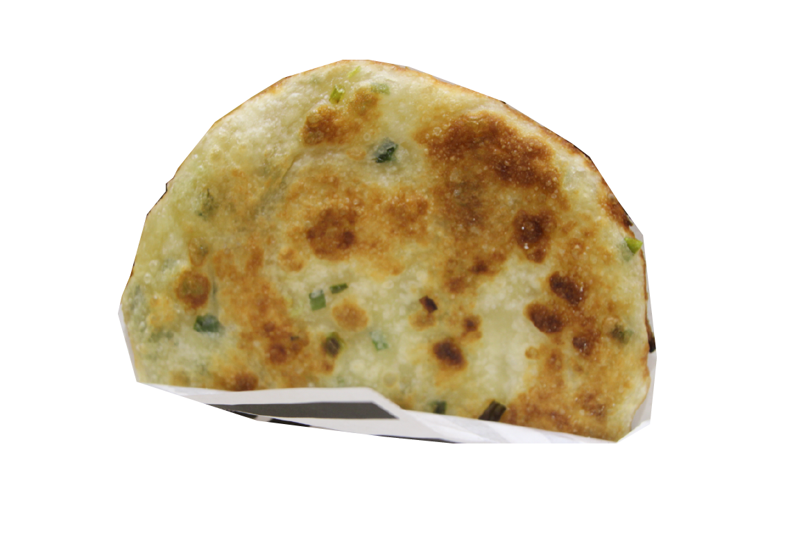 小麦粉の生地にネギを加え、こんがり焼いた台湾で人気の屋台グルメ。