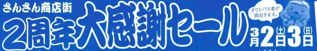 2019年3月3日(日)で2周年を迎えるさんさん商店街。