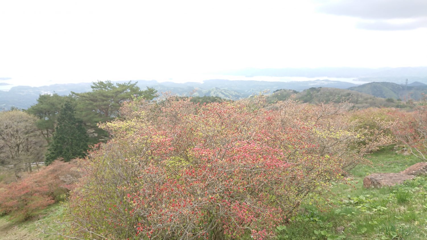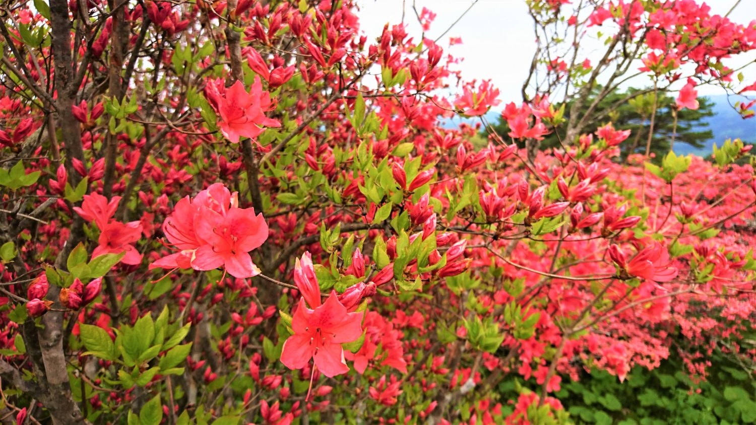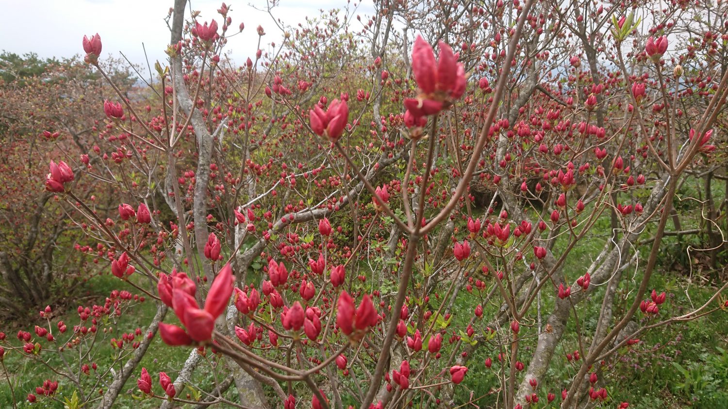 つつじも多くが色づき、山肌を赤く染め始めています。