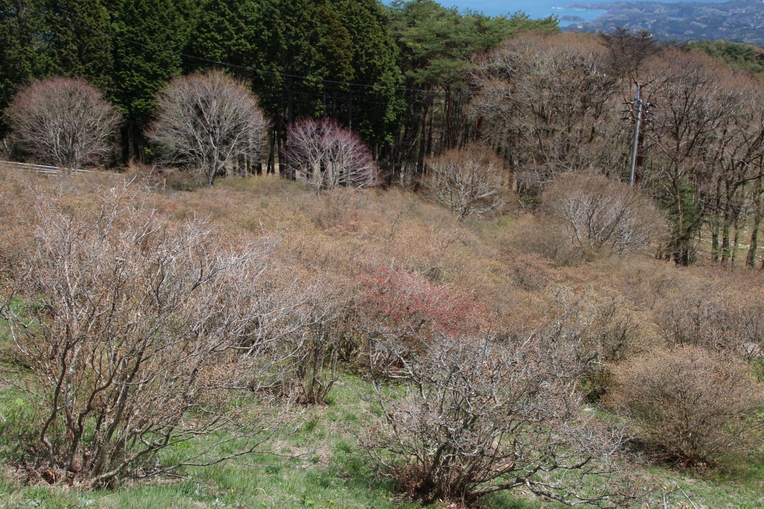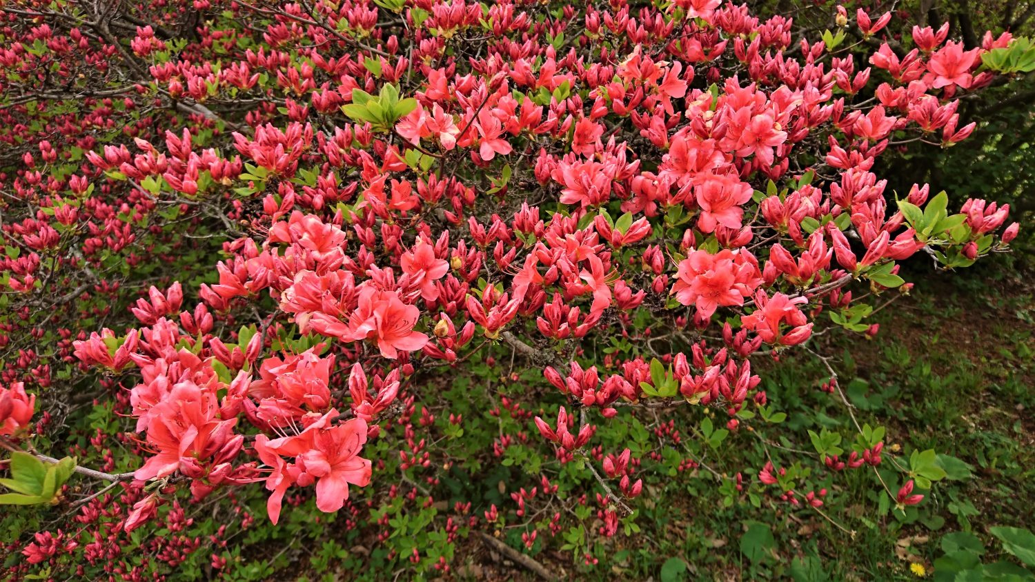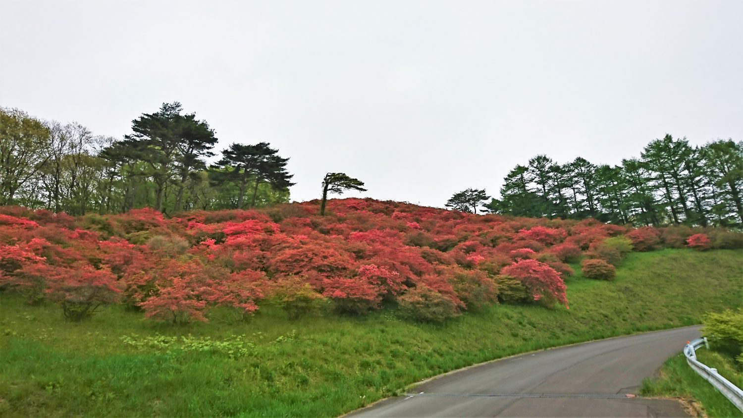 つつじも多くが色づき、山肌を赤く染め始めています。