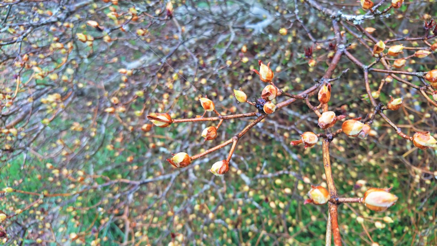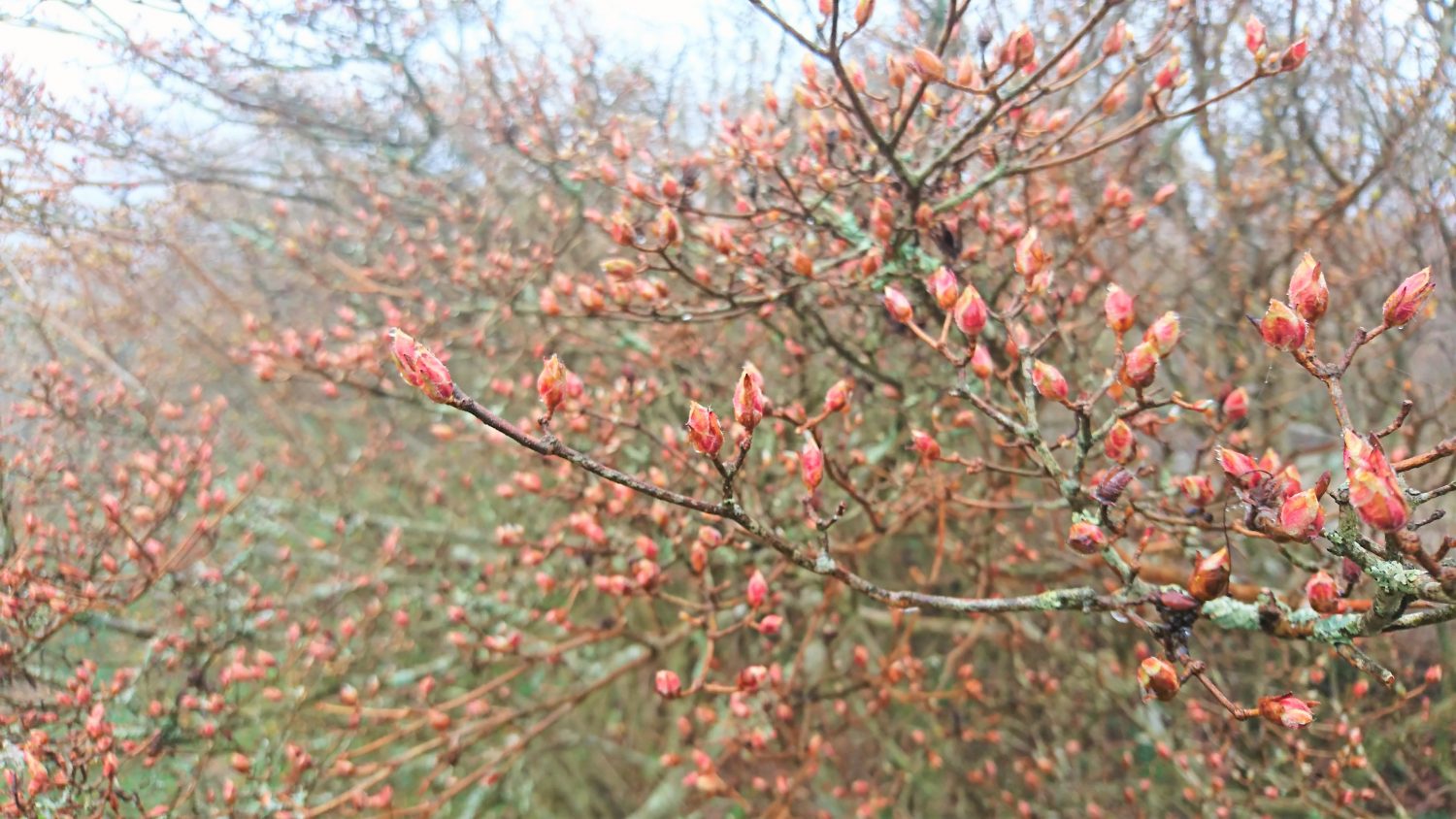 ところどころ赤く色付いている蕾もありますが、例年と比較し開花は遅れている