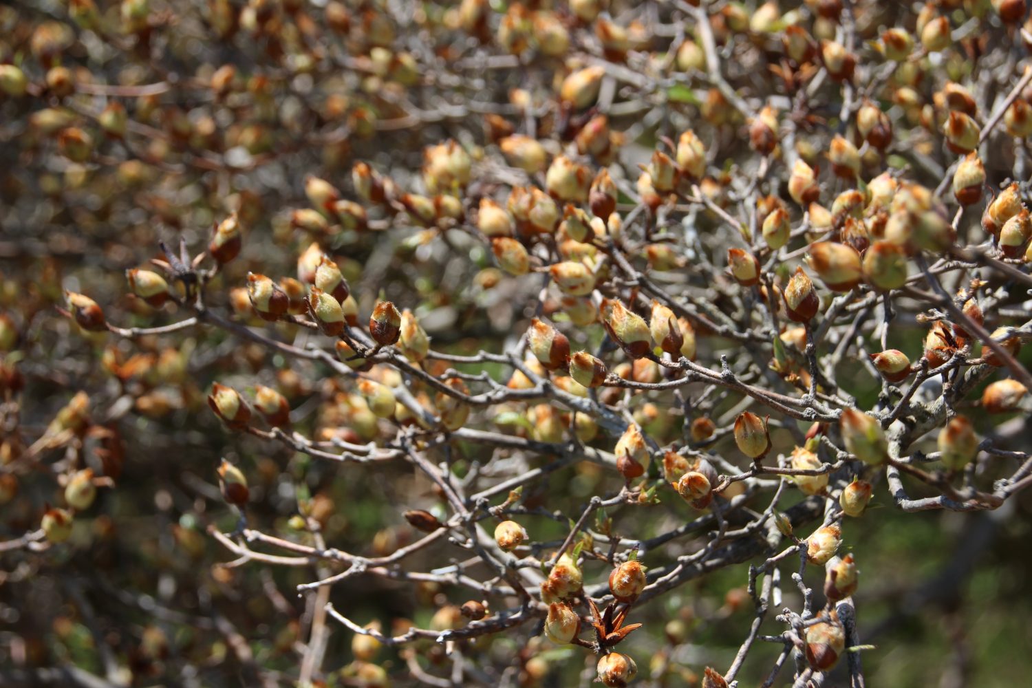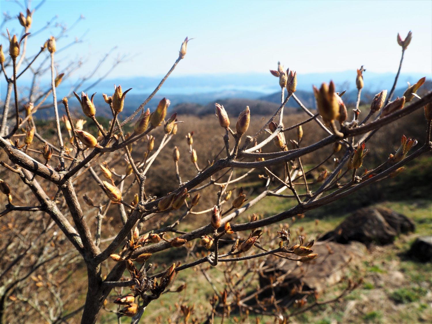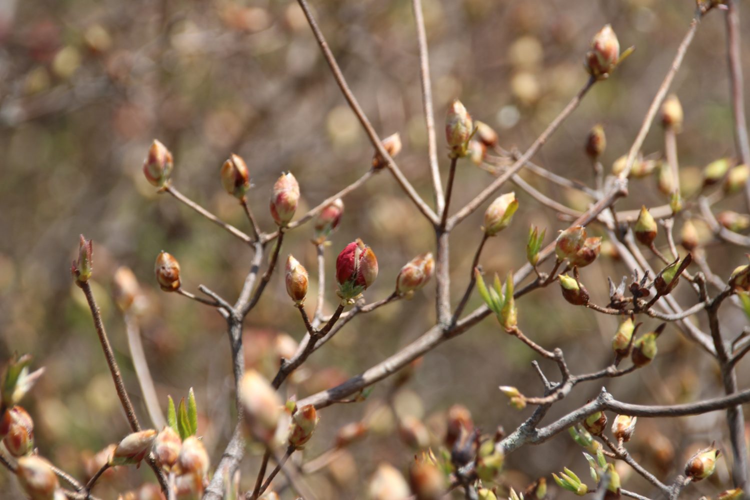 ようやく春らしい気候になりましたが、つつじの花は茶色の蕾が目立ちます。