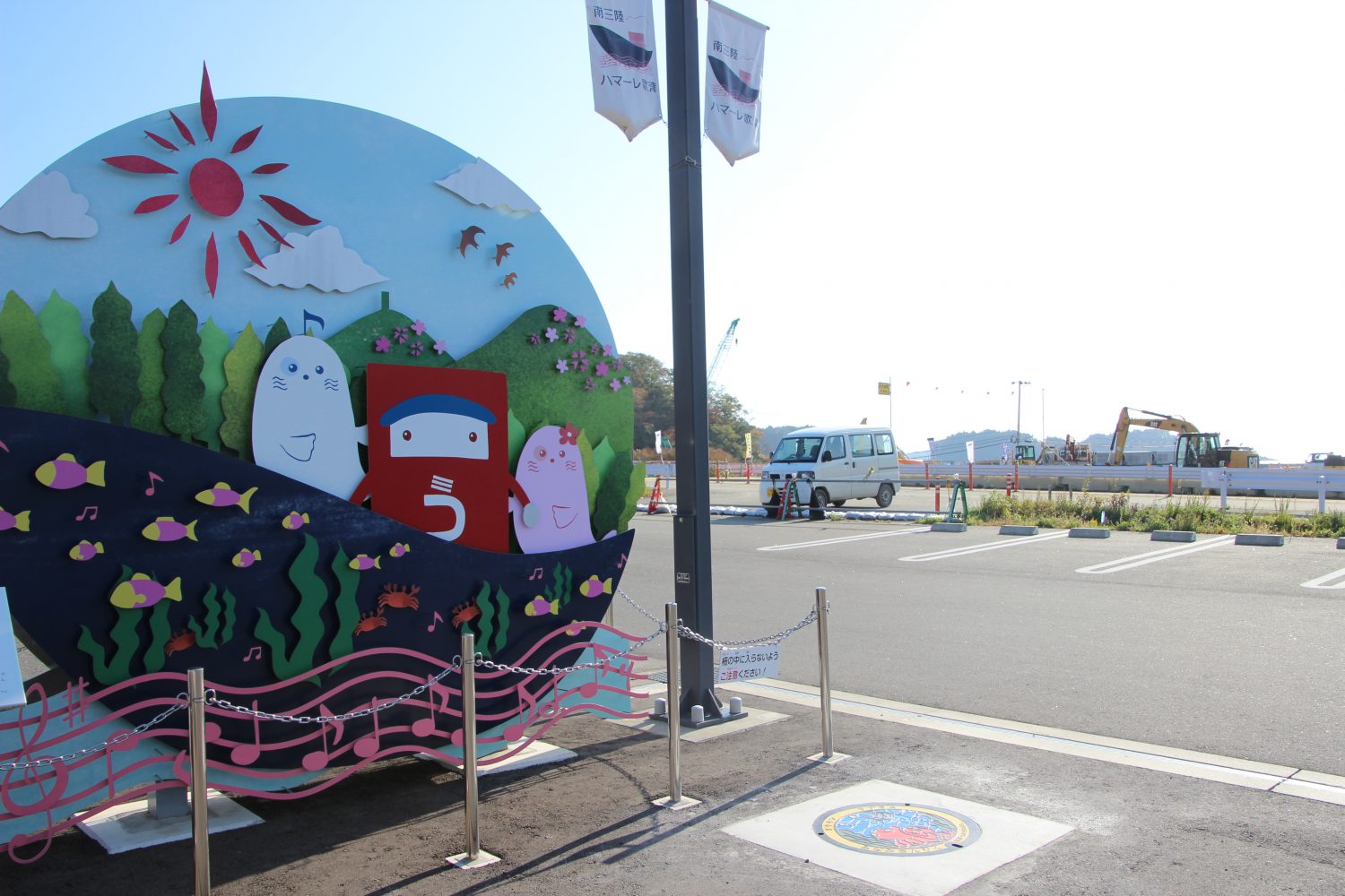 南三陸町はマンホール設置個所と同じ「ハマーレ歌津」にスタンプラリー台が設置。