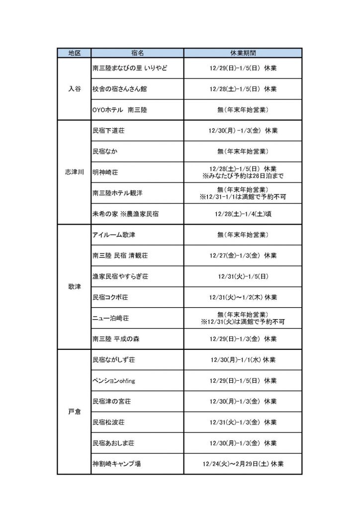 【南三陸町観光協会管理 施設・店舗 営業情報】