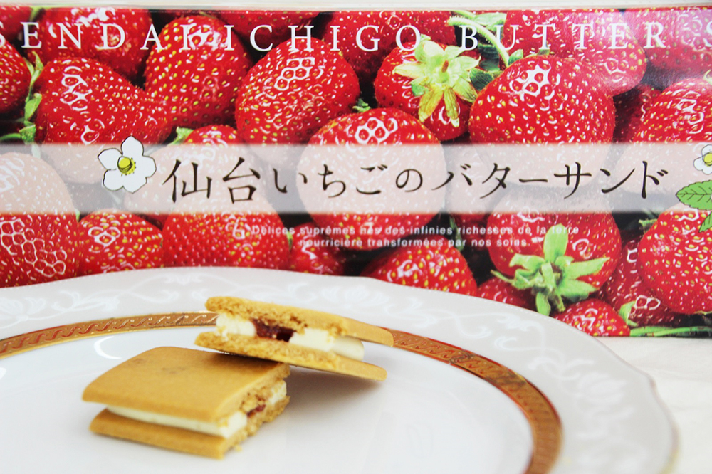 南三陸へお越し頂いた方も山清と聞けば一番に【タコプリン】を思い浮かべる方が多いかと思います。しかしそのタコプリンにも負けぬ南三陸おやつ・お土産品がこの仙台いちごのバターサンド。いちごの酸味とクリームの甘さ、クッキーのしっとりさがとてもマッチしている一品です。