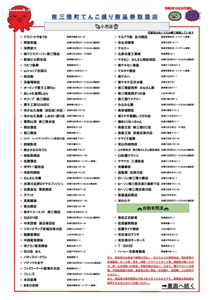 てんこ盛り商品券取扱事業者一覧(10月1日更新) [551KB pdfファイル]