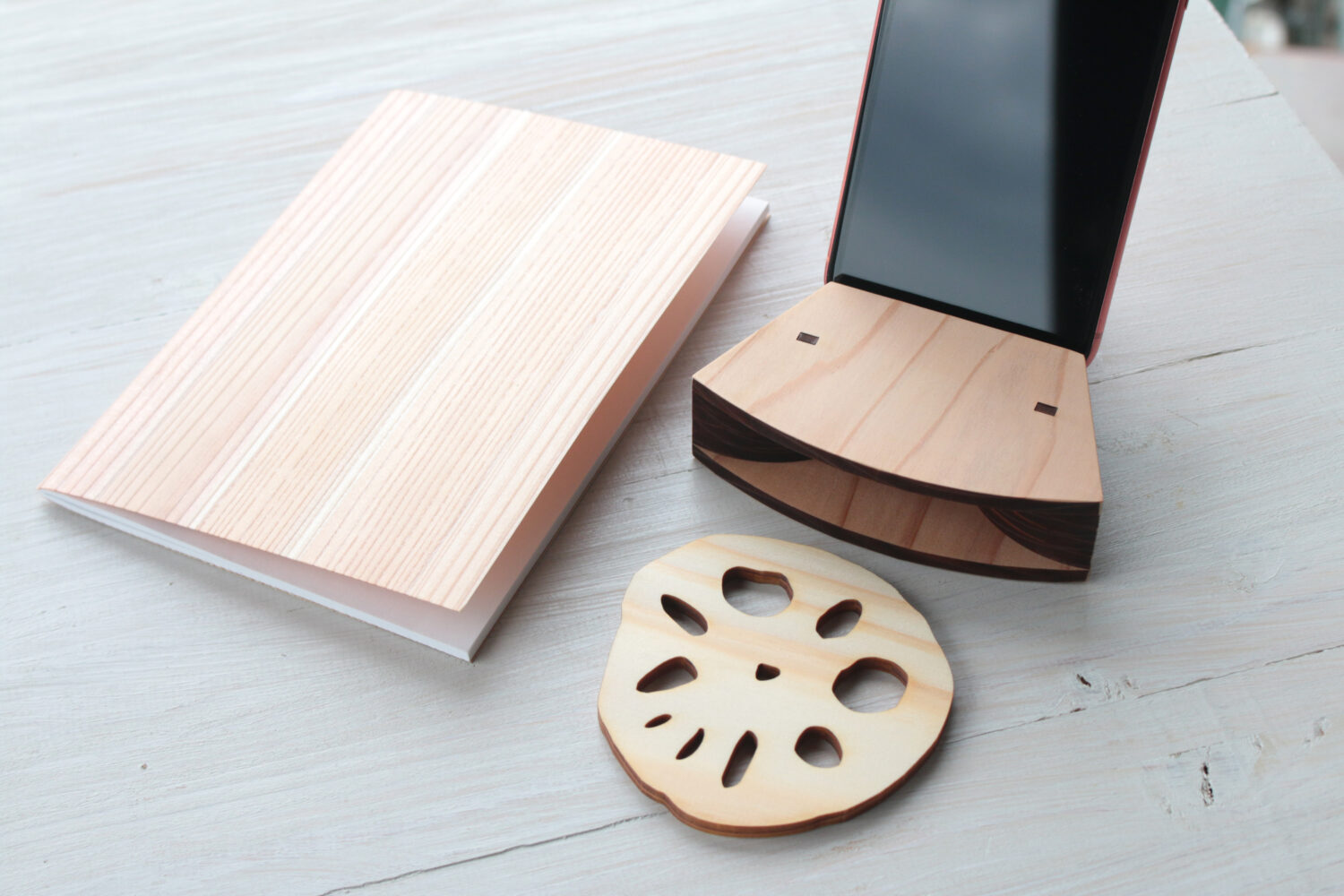 価格:3,000円(スマホスピーカー 蓮根コースター 木製表紙ノート)