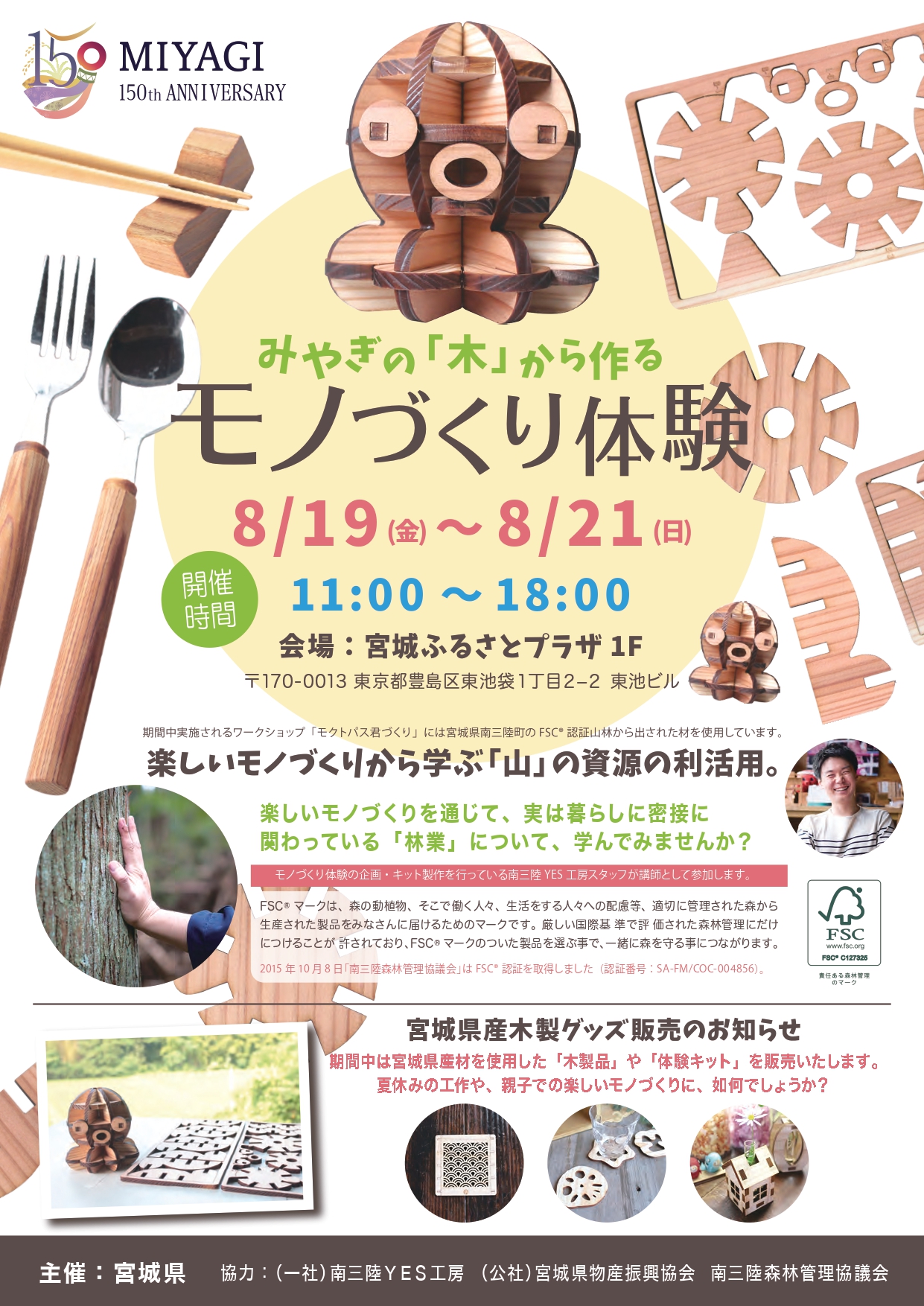 8/19(金)~8/21(日)の3日間は、南三陸町のYES工房が木を使ったモノづくり体験を通して、宮城県産材をPRします🌲✨