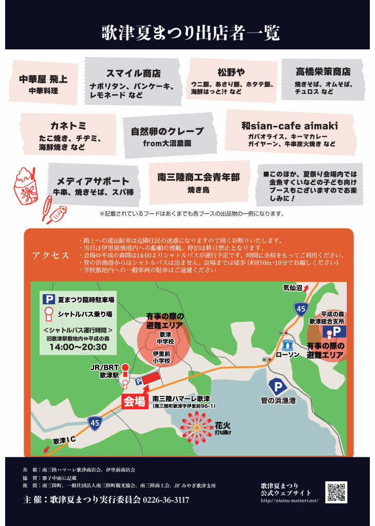 今年は、在住地域に限定せず、新型コロナウイルス感染症対策を実施しながら行います。子どもから大人まで楽しめる「歌津夏まつり」