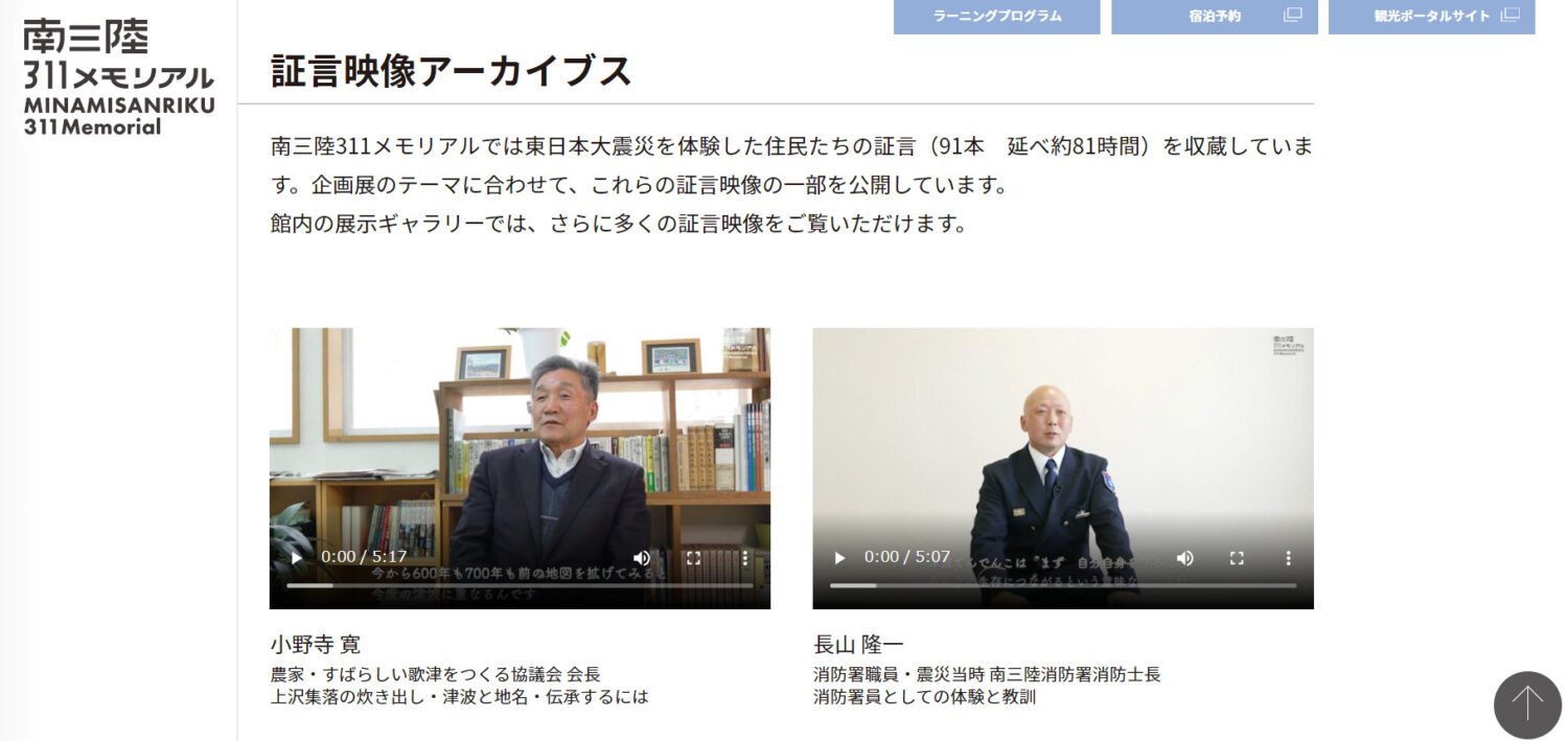 訪れた人に、防災・減災について自分ごととして考えるきっかけを提供する震災伝承ラーニング施設「南三陸311メモリアル」が、9月9日(金)より公式サイトをオープン。同時にサイト内にて南三陸町民による証言映像アーカイブスが公開となりました。