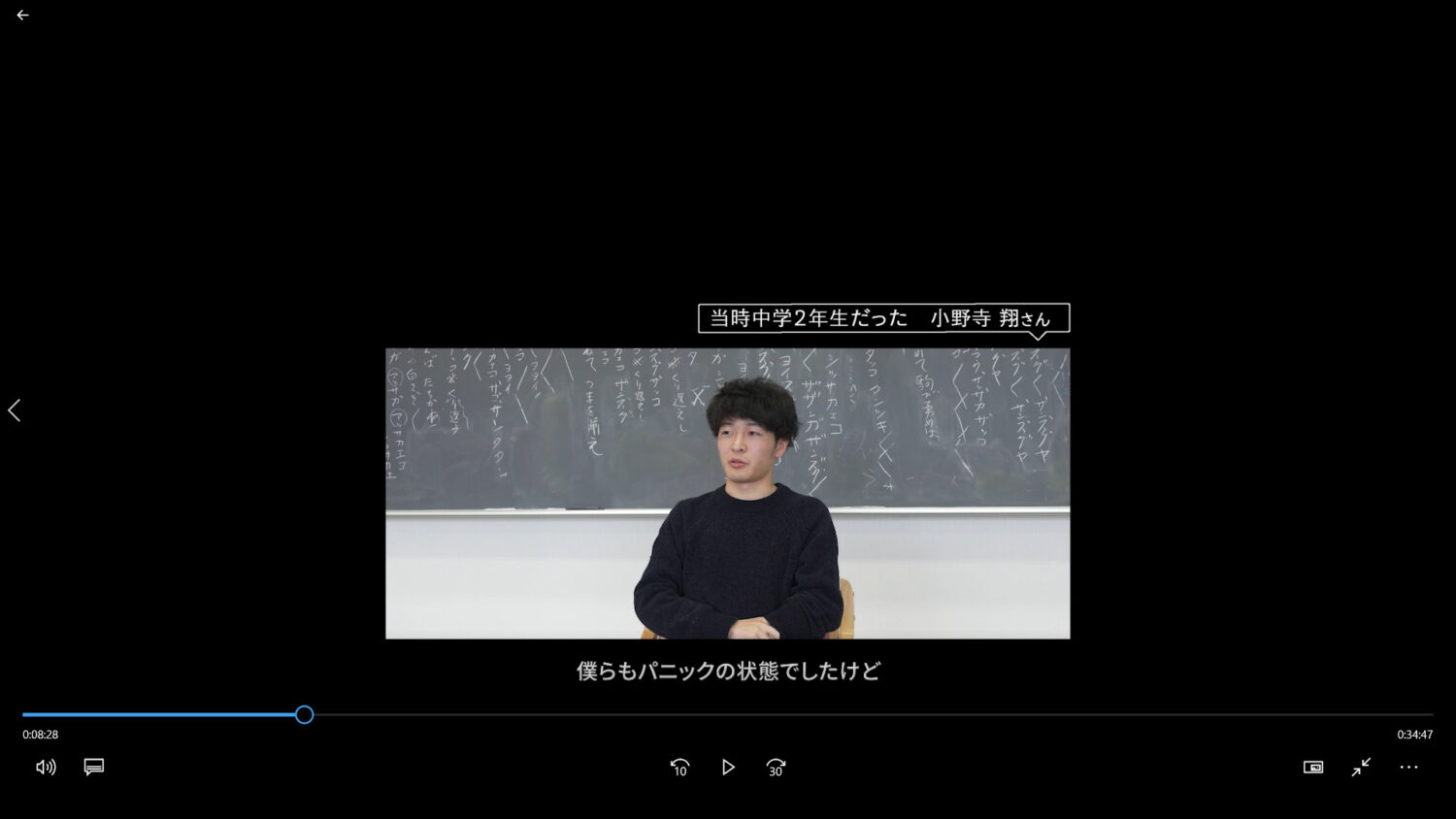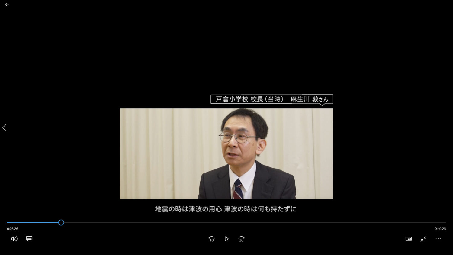 ラーニングプログラムは、証言映像を見るだけではなく、映像の途中で問いかけがあり、一緒に視聴した人と意見を交換し、よりリアルに防災について考えることができる仕組みとなっています。