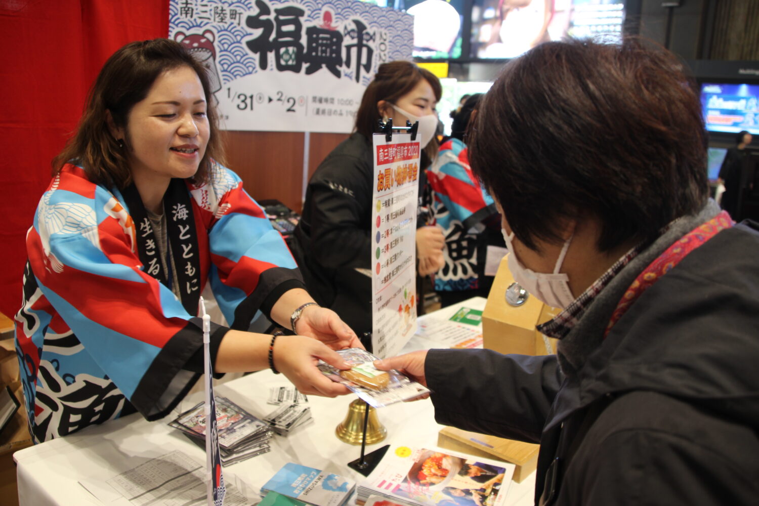 期間中、南三陸町物産展ブースにて、500円お買上げ毎に1枚抽選補助券を配布、