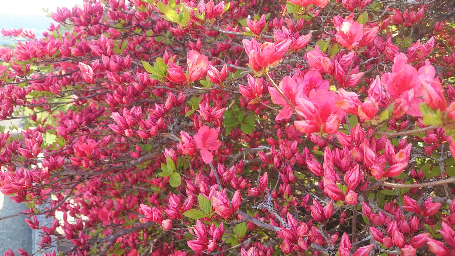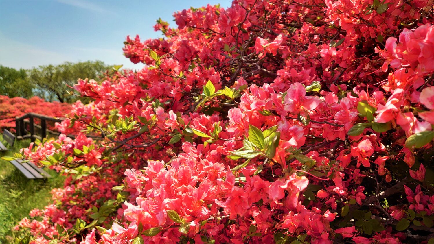 - つつじの赤と空の青のコントラストが綺麗ですね