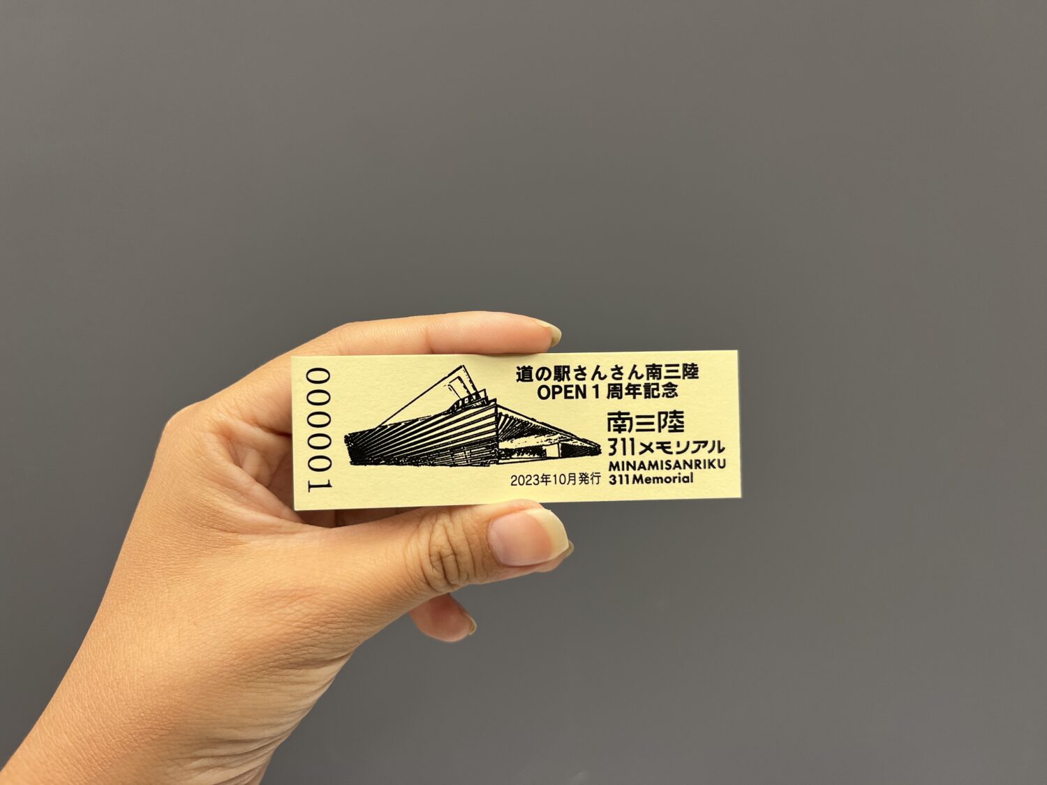 道の駅さんさん南三陸1周年限定の記念きっぷを無料配布いたします。配布する条件は以下の通りとなります。この機会に新しくできた南三陸311メモリアルにお立ち寄りください。