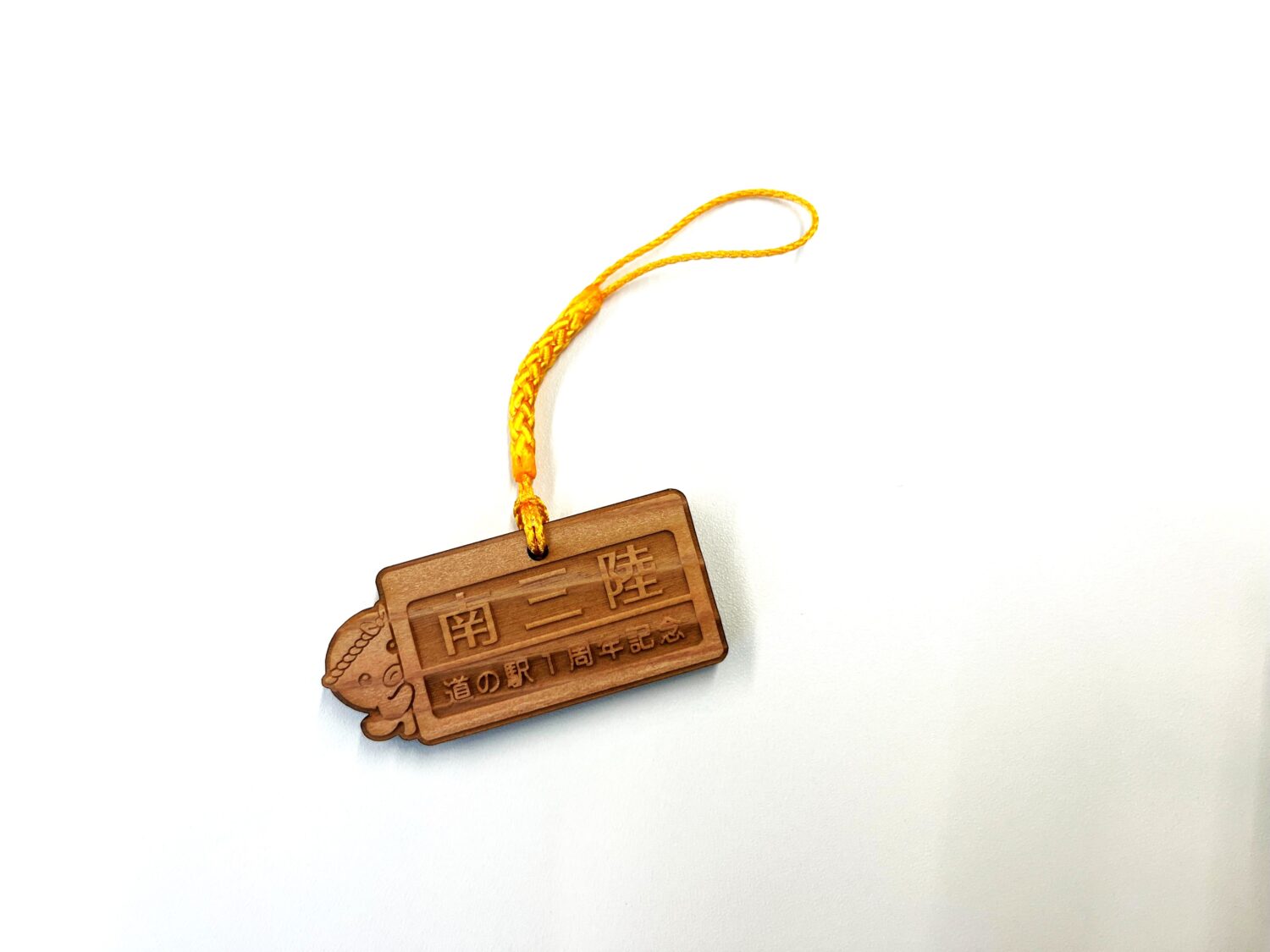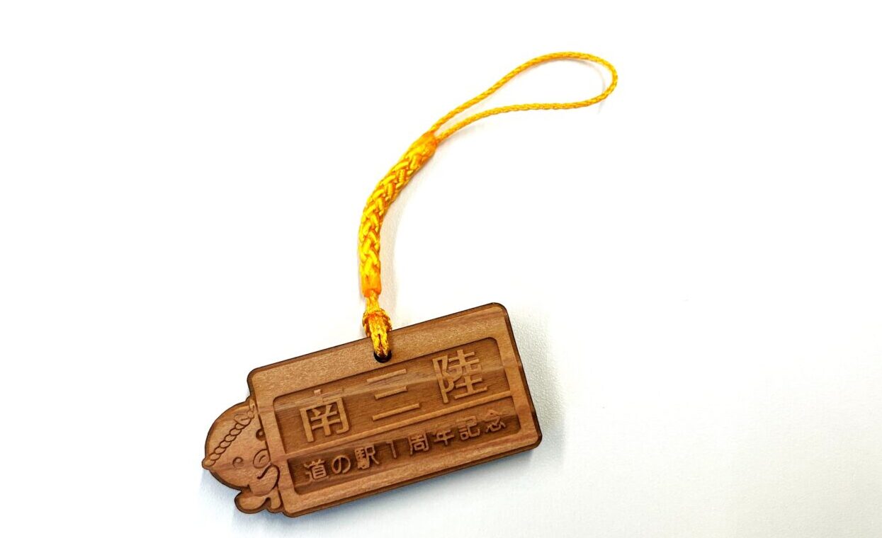道の駅1周年のこちらのストラップは道の駅の建物にも使われている木材と同じく地元産の南三陸杉を使っています。1つ1つ色合いや木目の雰囲気が違います。