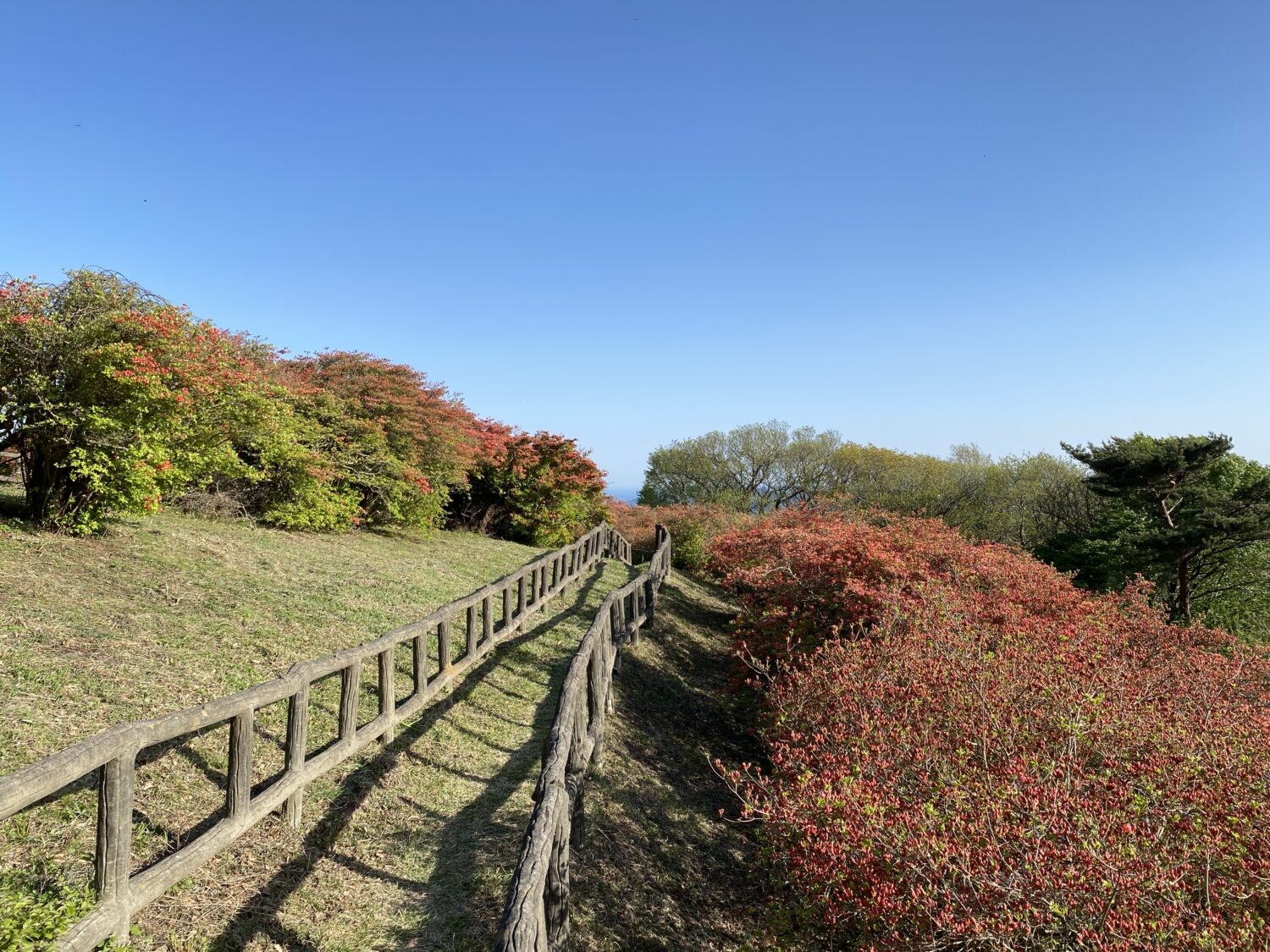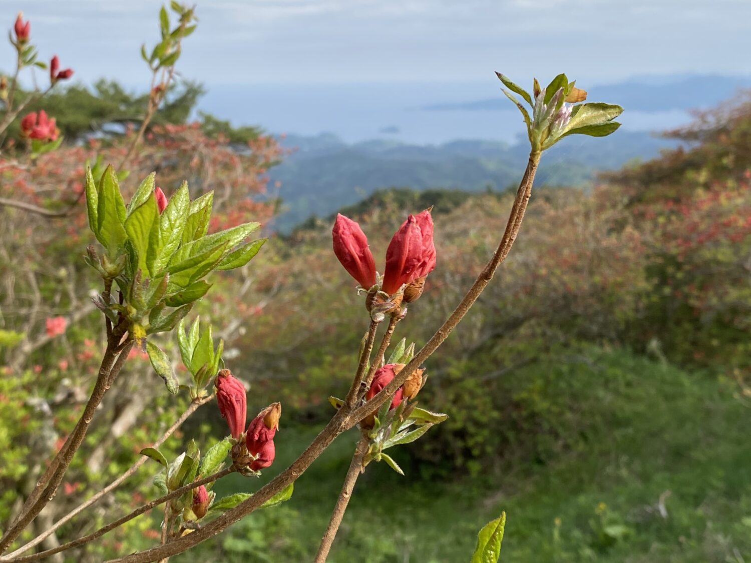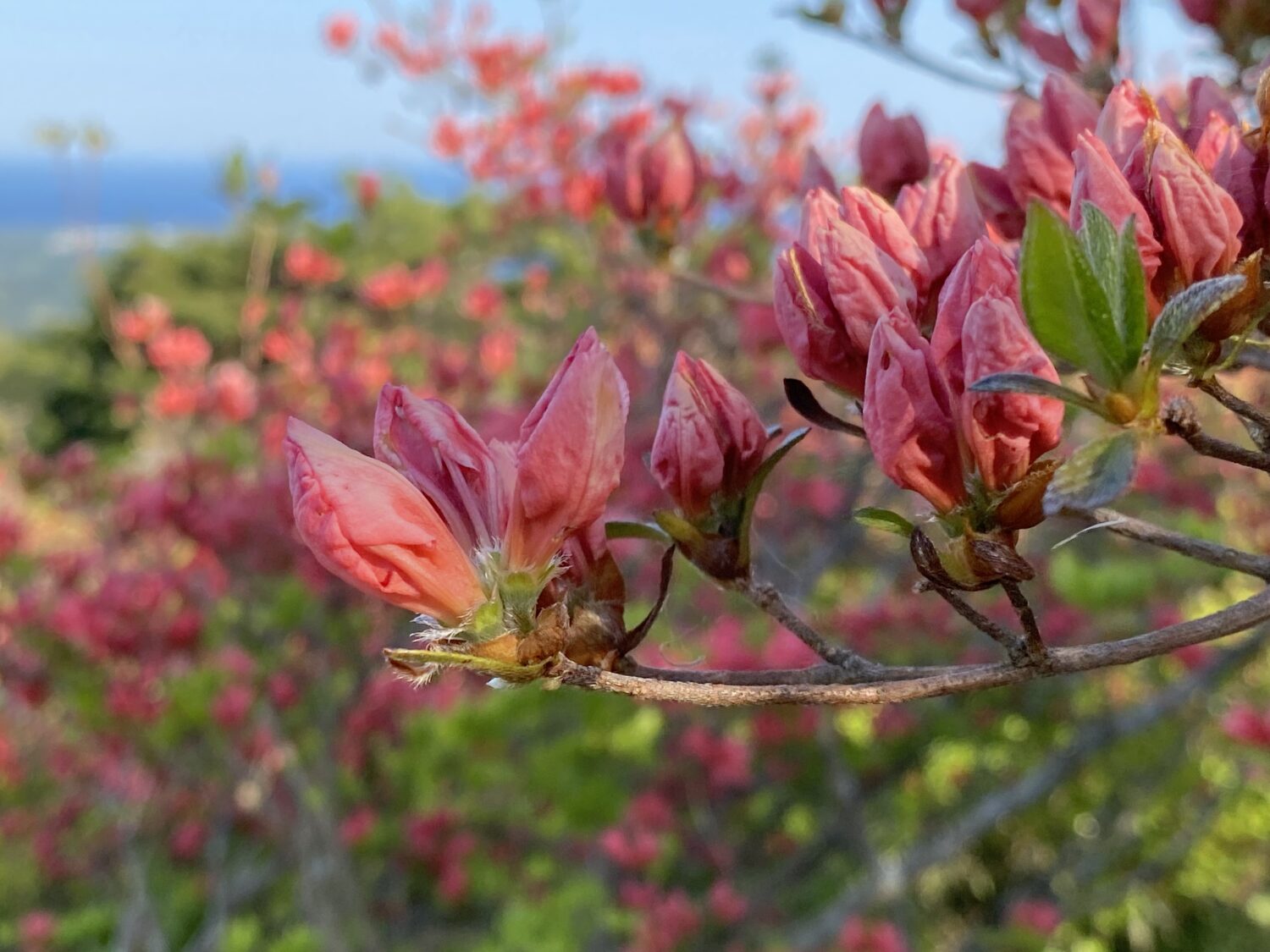 涼しい山頂は平地より、つつじの開花をゆっくりにします。