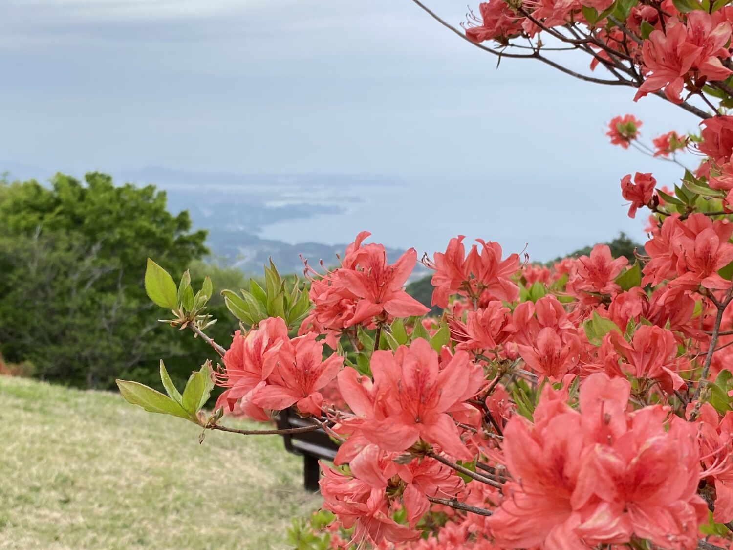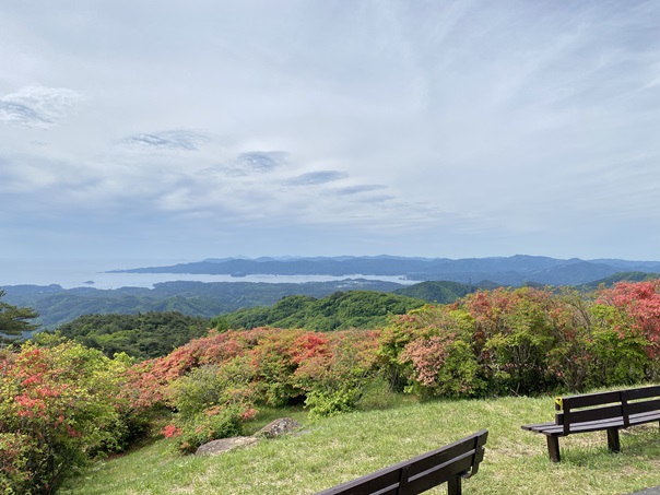 つつじの見頃は終えたものの、田束山は南三陸屈指のビュースポットです。