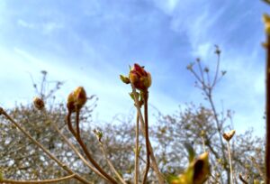 日当たりの良いつつじでは、赤く膨らんだ株がその姿を見せてくれていました。