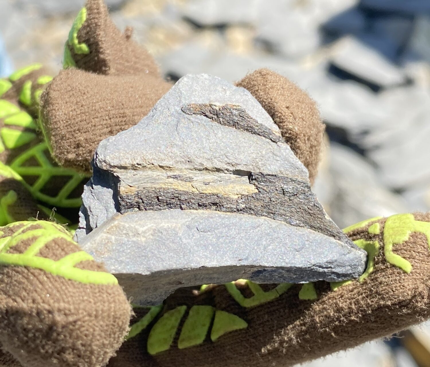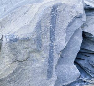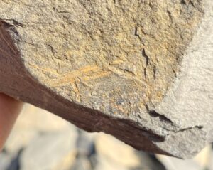 川岸から流れて散らばった植物化石です。茎の化石が良く見つかるかも?