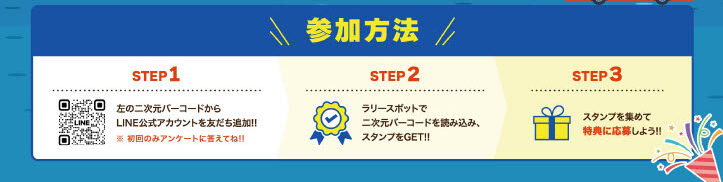 参加方法:まずは、二次元バーコードから『LINE公式アカウントを友だち追加』