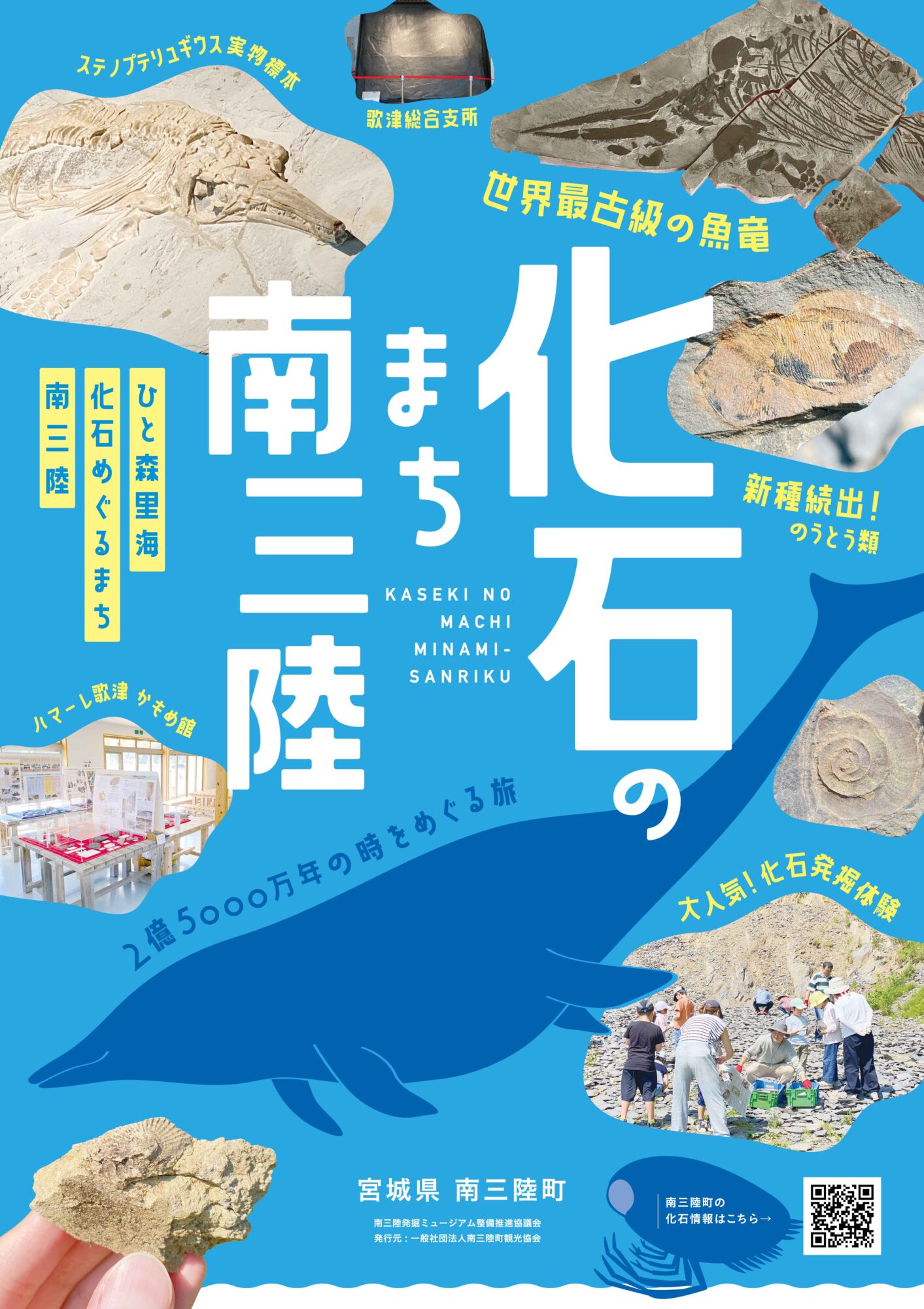 「化石の町・南三陸」イメージポスターが完成しました! 2024 9/10 お知らせ 2024-09-10 「化石の町・南三陸」がひと目で分かる!化石のイメージポスターが完成しました。 町は希少な化石の産地で、約2億5千万年から1億6千万年前の化石が足元に眠っています。日本初“のうとう類”・世界最古級“魚竜類”を始め、新種化石の報告も続々と上がっていて、実は研究者たちが頻繁に訪れています。 一般参加が可能な大人気の化石発掘体験は、年間1,000人以上の参加者!リピーターさんも多いですよ。 化石にまつわるスポットや体験、飲食メニューも紹介していますので、特設ページをご覧ください。 ▶「化石の町・南三陸」特設ページ お知らせ この記事が気に入ったら フォローしてね! Follow @MSkankou Follow Me よかったらシェアしてね! URLをコピーする URLをコピーしました! URLをコピーしました! 「道の駅記念きっぷ」周遊特典が増えました! ツーリズムEXPOジャパン2024への出展について