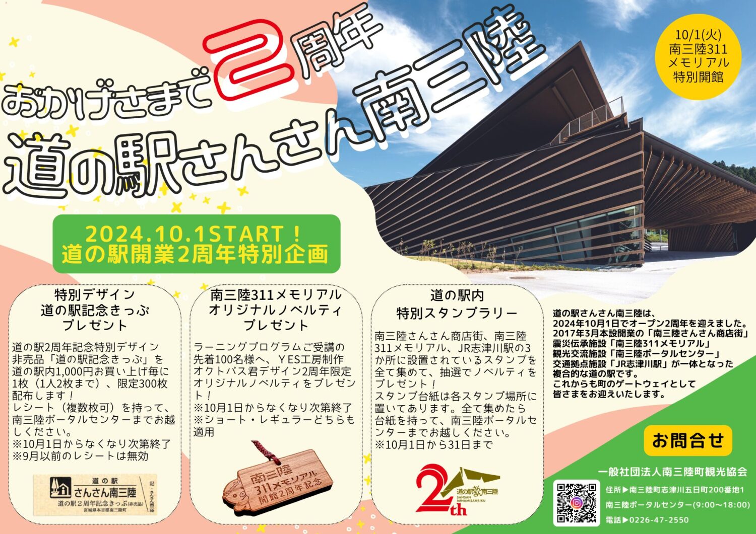 おかげさまで、2024年10月1日で道の駅「さんさん南三陸」は開業2周年を迎えます。