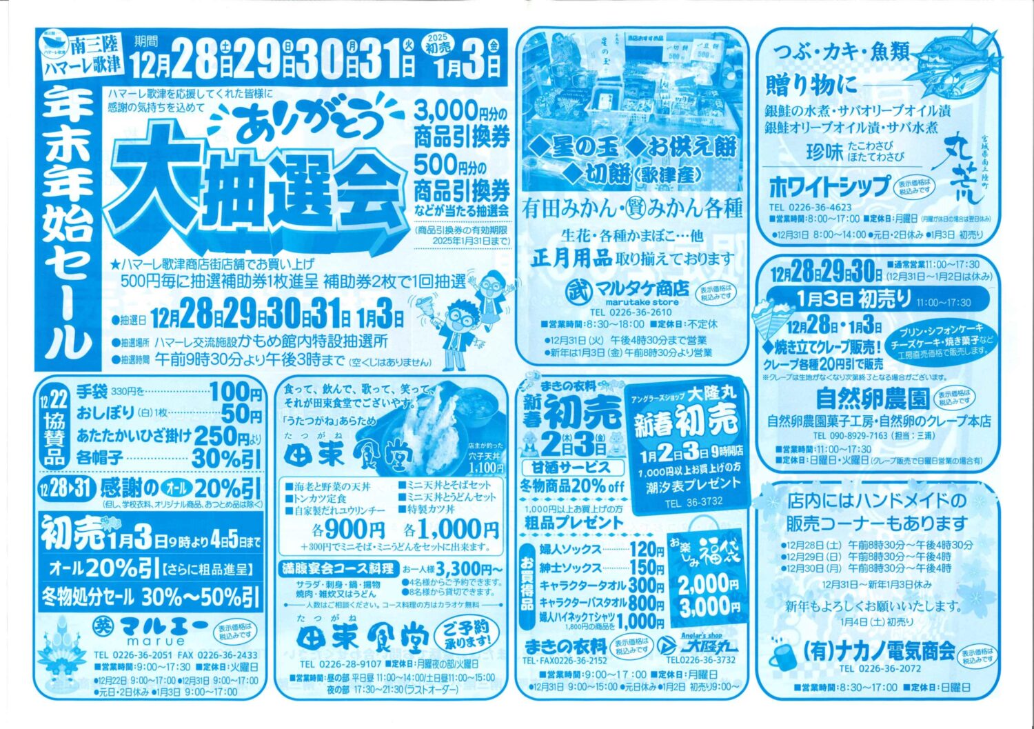 各店舗によって営業時間が異なりますので、上記チラシをご参考ください。